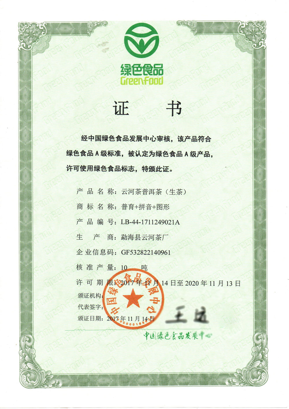 2014年首次获得绿色食品认证证书,目前已培育老曼峨、巴达、西定等多个绿色食品原料基地,力求为每一位消费者提供放心茶。