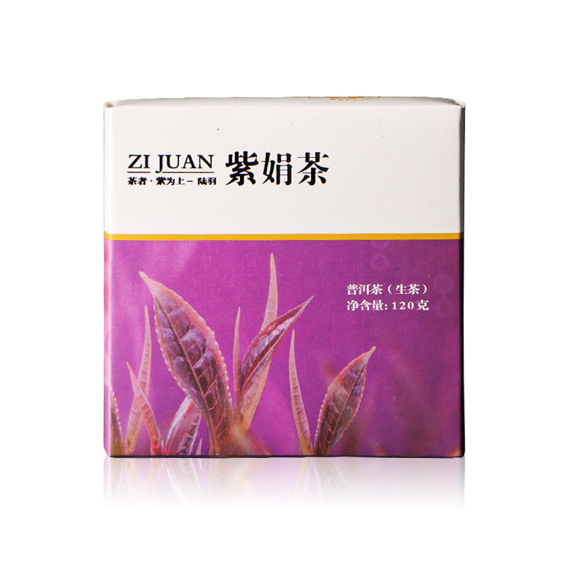 紫娟茶 120克x6 砖茶 生茶 紫娟,通体透紫,紫藤,紫茎,紫叶。 紫娟茶属于普洱茶变种,是云南大叶群体茶树品种中的一种特异品种。 云河紫娟120克茶砖,没有老式茶砖的厚实沉重,