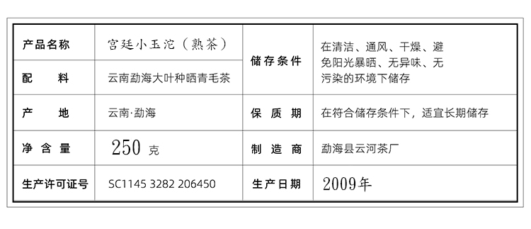 2009宫廷小玉沱熟茶250g